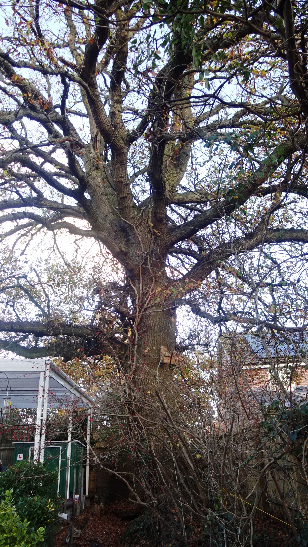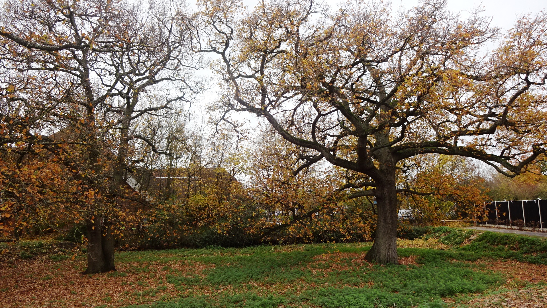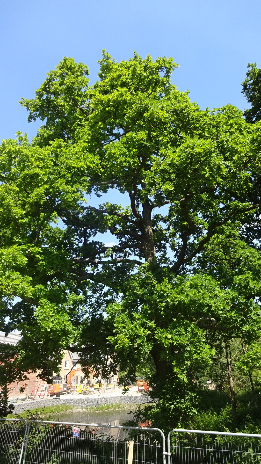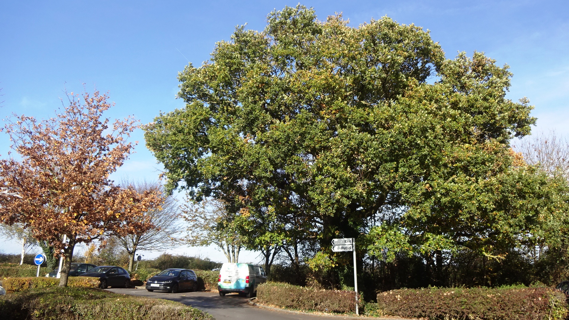 OAKEND LEA + TESCO Oakend Lea, east of Tesco and south of the A4130 road to Wallingford, contains perhaps Didcot's largest concentration of mature oak trees – 28 of them. The original site was quite marshy, so the housing development has been built on raised land, leaving the trees to occupy their original areas below estate level. The oaks are certainly something to marvel at, but if you go to the southernmost end of Oakend Lea, nearest the railway, and venture into a wooded group of trees, you may encounter the dis-spiriting remains of mature trees that were felled as part of the development because they had been damaged by storms and/or affected by disease. Some of the tree depressions are surrounded by steep banks, so can be difficult to get into, and beware that they still retain their marshy character – a ready supply of water is of course what has helped these oaks to grow to such good sizes. Finally, in the north-east corner of Tesco car park, is a fairly mature oak.