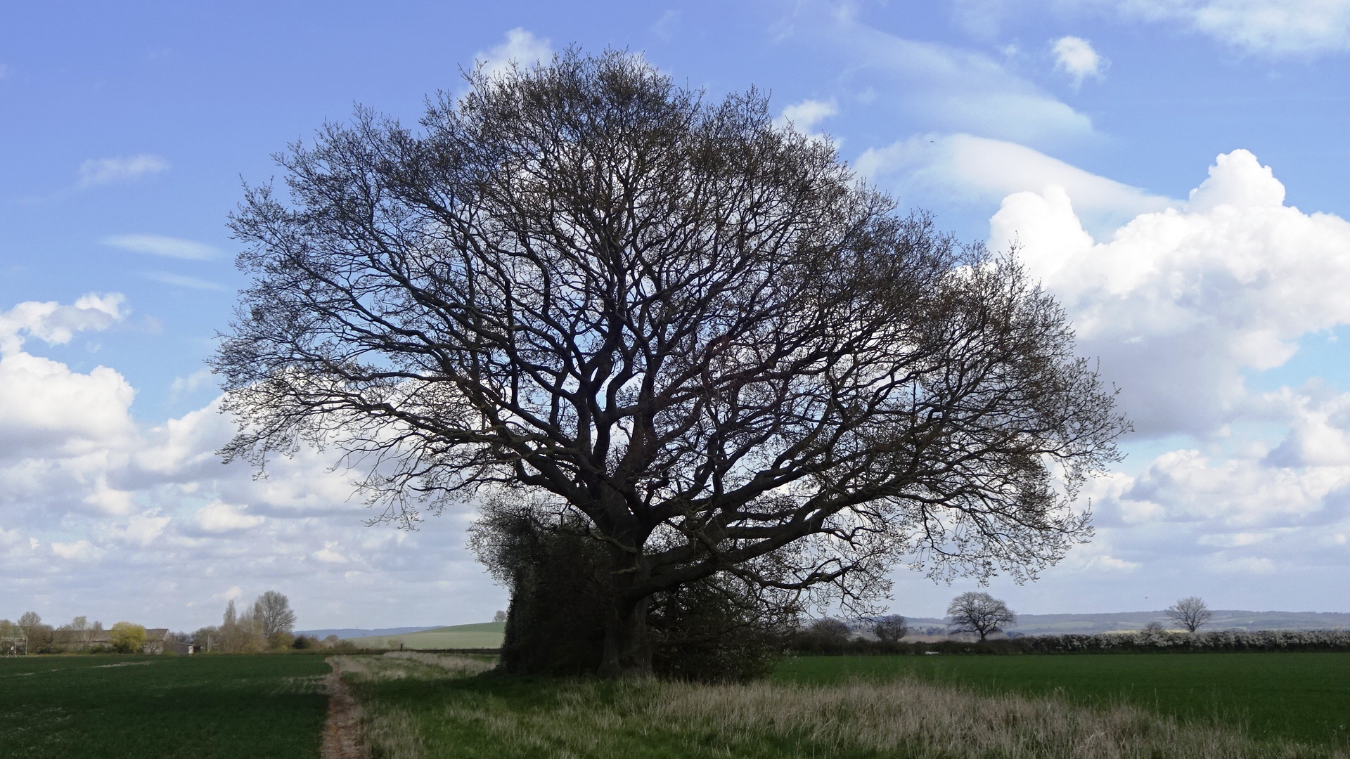 LONG WITTENHAM PATH North of the Furlongs estate, and to the east of the B4016 Abingdon Road opposite Willowbrook Park is a large area of fields incorporating 88 protected oaks in the east-west field boundaries – a haven of wildlife and a reminder of how our landscape must have looked hundreds of years ago. Much of this area is private agricultural land, but there is one important public footpath (Oxfordshire 189 then 354) which passes adjacent to 50 medium-to-large oak trees. As there is no parking on the B4016, the best option is to park in Willowbrook Park's Franklin Gardens, follow footpath 287 which leads over a stile through the grounds of early 17th century Ladygrove Farmhouse (Grade II Listed), then out along its gravel drive passing four large oaks. Taking care when crossing the B4016, you will see a footpath sign diagonally opposite and this is the start of footpath 189 to Long Wittenham. The first rectangular field is bordered by 21 oaks – all with TPOs. At the top of the hill is the border to the North Wessex Downs Area of Outstanding Natural Beauty (AONB) which confers legal protection on trees and hedgerows under the Countryside and Rights of Way Act 2000. The path curves left and soon a row of very large oaks comes into view, the obviously largest of which dates from about 1795. While footpath 354 peels off south (adjacent to the golf course pines but no large trees) and footpath 287 later heads north near Willington Farm, continue east to encounter dozens more oaks. After passing Long Wittenham Wood (inaccessible) the path ends at Long Wittenham Road / Sires Hill.